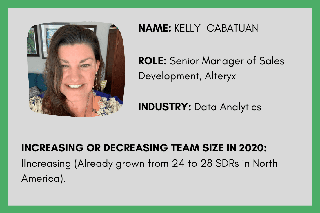 Now, as the Senior Manager of Sales Development at Alteryx, Kelly has drawn on her experiences to energize their sales team. She spoke to Tenbound about the challenges they face, the tech that powers the team, and how they use their SDRs to support existing customers.