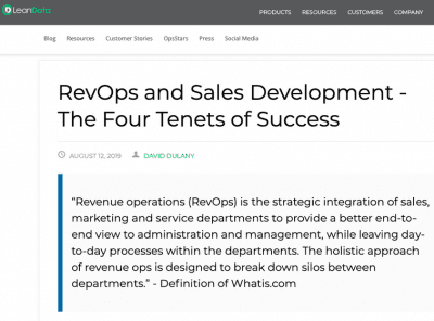 Everyone should be working toward a number, leading toward an overall revenue goal. RevOps causes you to ask the tough questions. How is marketing going to support Sales Development? How is Sales Development going to take that material and turn it in to appointments for the Sales team? How is the Sales team doing move those appointments to pipeline? Who is going to report wins and learnings back to marketing and even product? No longer is anyone hiding behind vanity metrics, RevOps is about being realistic and practical. And being accountable to the goal.