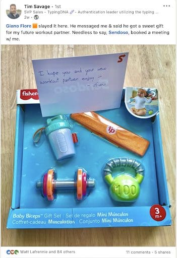 High-impact gifts get posted on LinkedIn and are cheered on by teams that wish they thought of the idea. They start sales conversations and carry the relationship through the buyer’s journey.